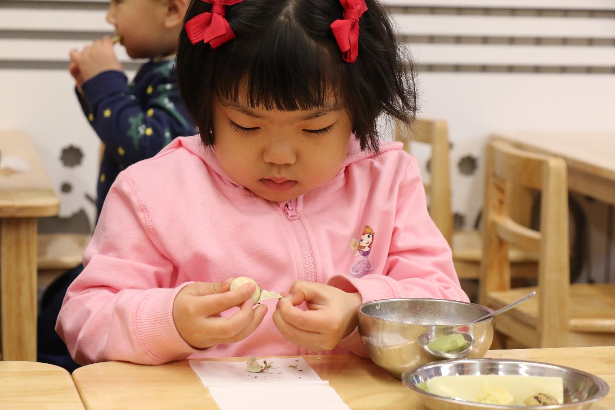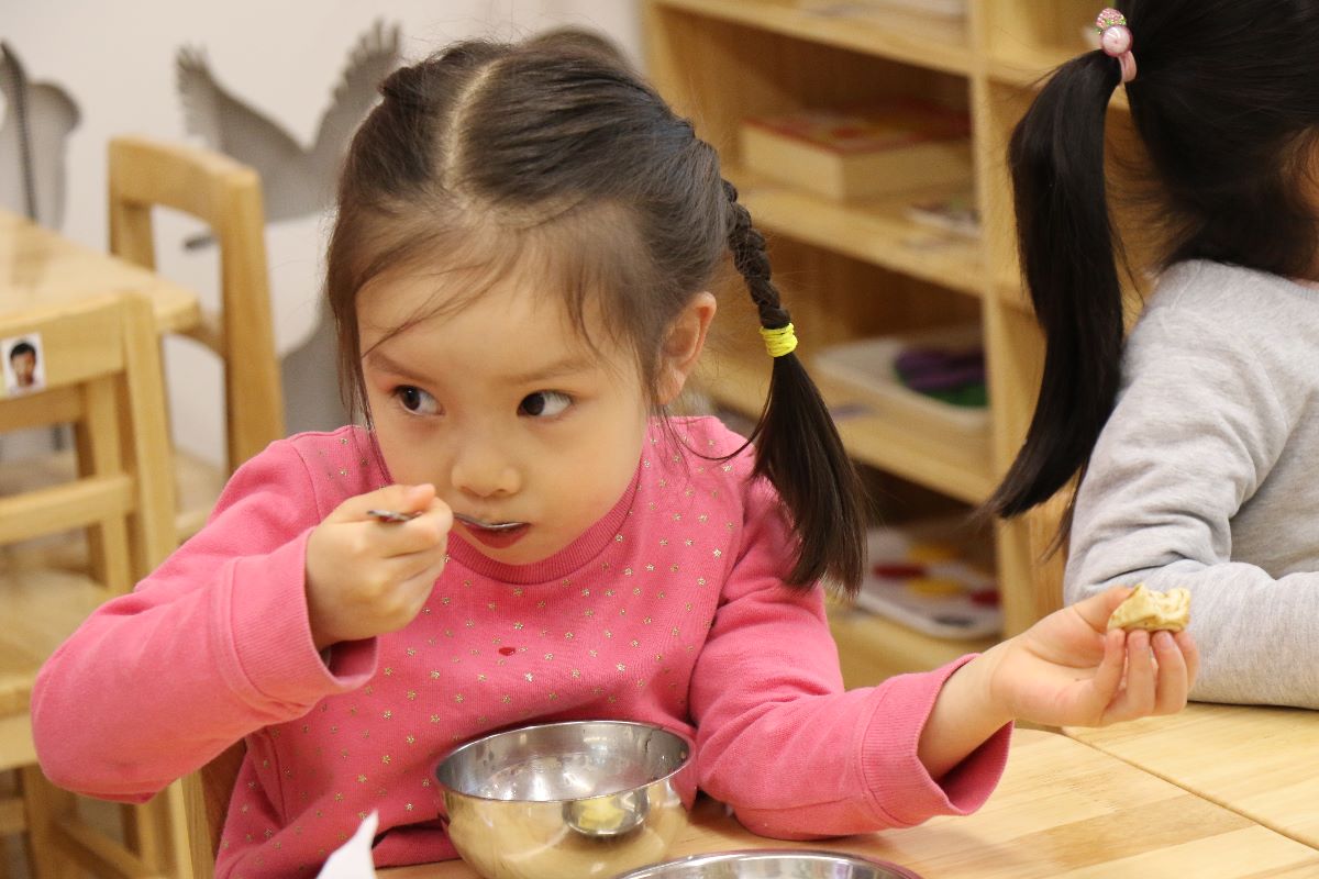 幼儿园的饭菜真好吃,啊呜一口吃光光!