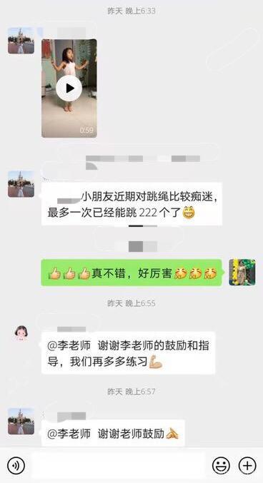 在教师的鼓励下,孩子的跳绳能力进步飞快!