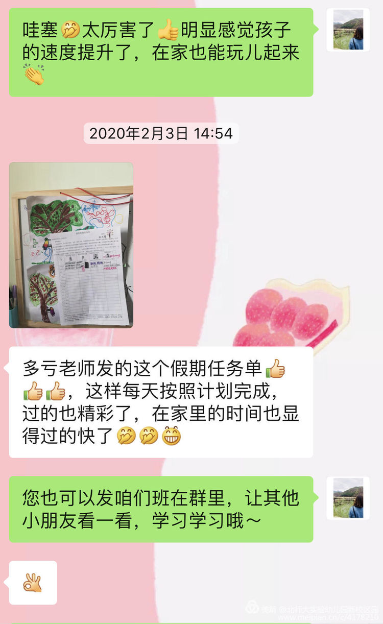 教师们无微不至的关心与巧用心思的家教指导,得到了家长们的积极响应和好评,看到孩子们足不出户就能享受健康、快乐、有意义的时光,老师们倍感欣慰。