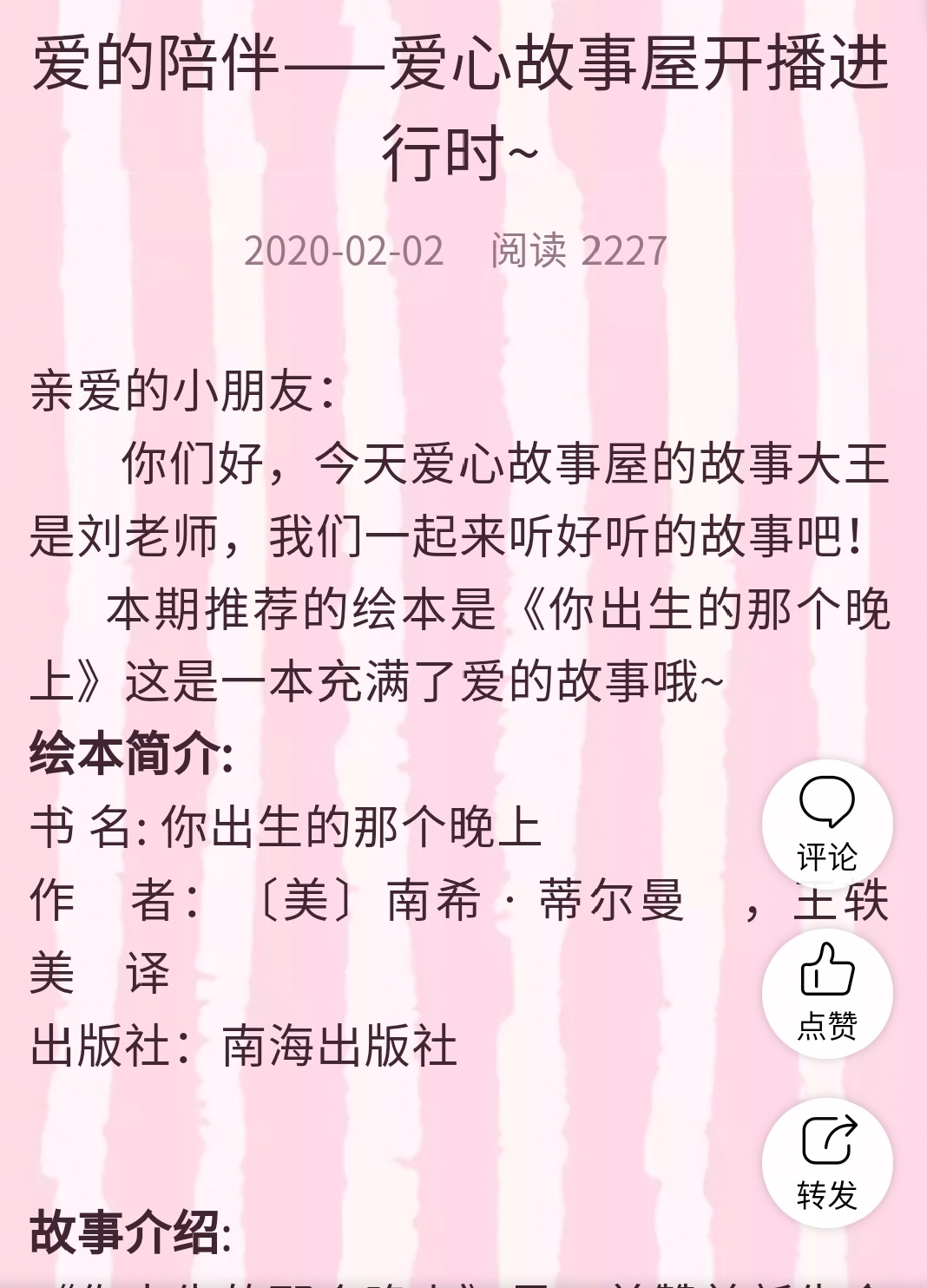 # 听老师讲故事——绘本接力活动 #