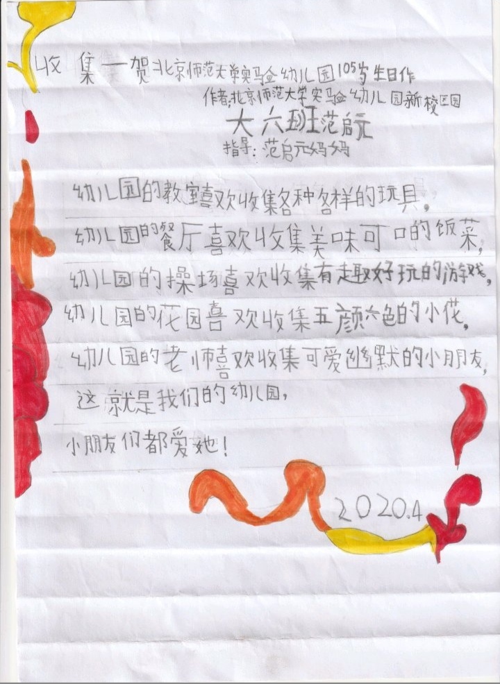 文文:我想把祝福写成诗的样子,送给幼儿园。