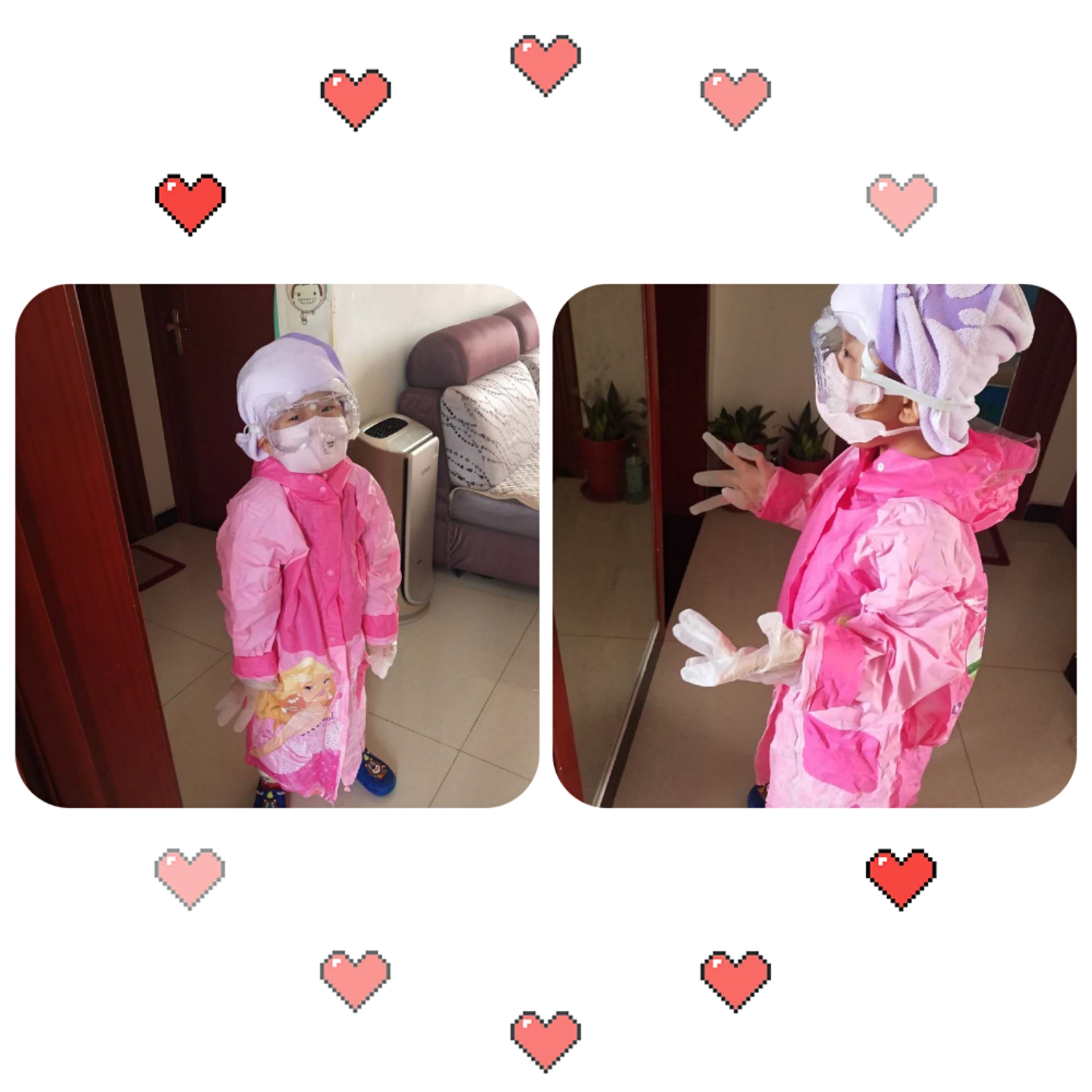 小朋友很好奇医生的防护服,一层又一层,绿的、白的,还有口罩、帽子、眼罩,仿佛太空超人一般,一起来研究一下吧!