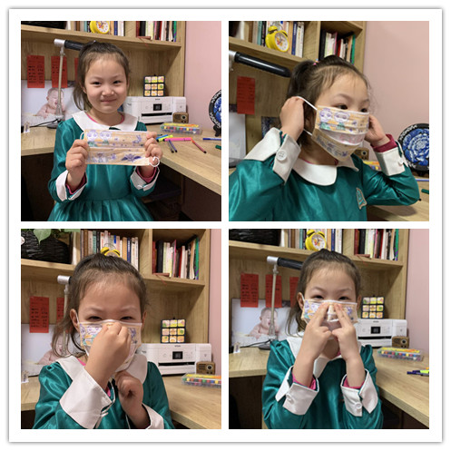 张嘉贺: 在设计制作口罩过程中,小朋友们体验了设计并制作105周年纪念口罩的乐趣。利用废旧材料创作口罩,提高了孩子的动手能力、想象力、表达能力。她们非常乐于分享自自己的创作过程。