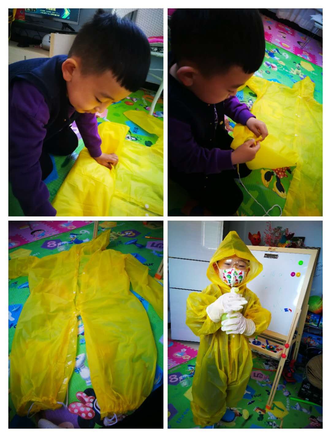 轩轩:在防护服的裤子上安装拉链,这样就可以上厕所了。