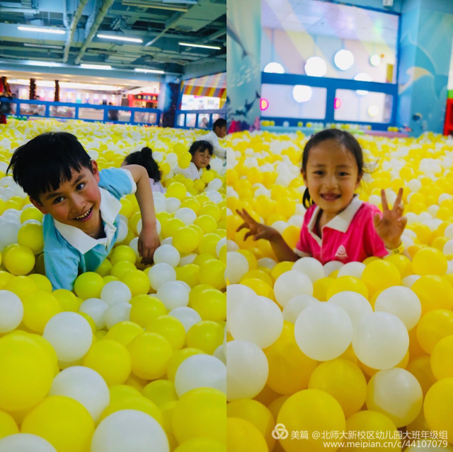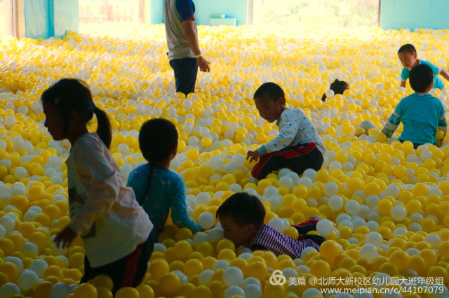 室内的海洋球馆也是孩子们放松自在的好去处。倒着,卧着,躺着,睡着,真是一种幸福的享受。