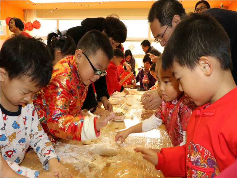 过年习惯吃饺子,是取新旧交替"更岁交子"的意思。美味的馅料,软硬正合好的面团儿,擀皮儿,捏边儿,看,小朋友们包的饺子还不错吧?
