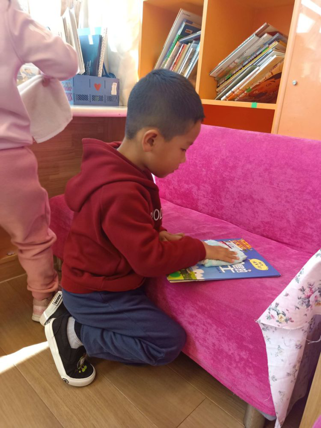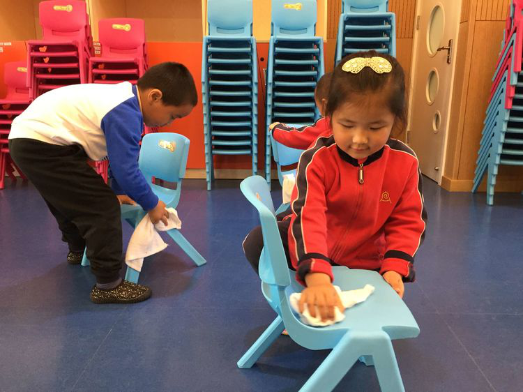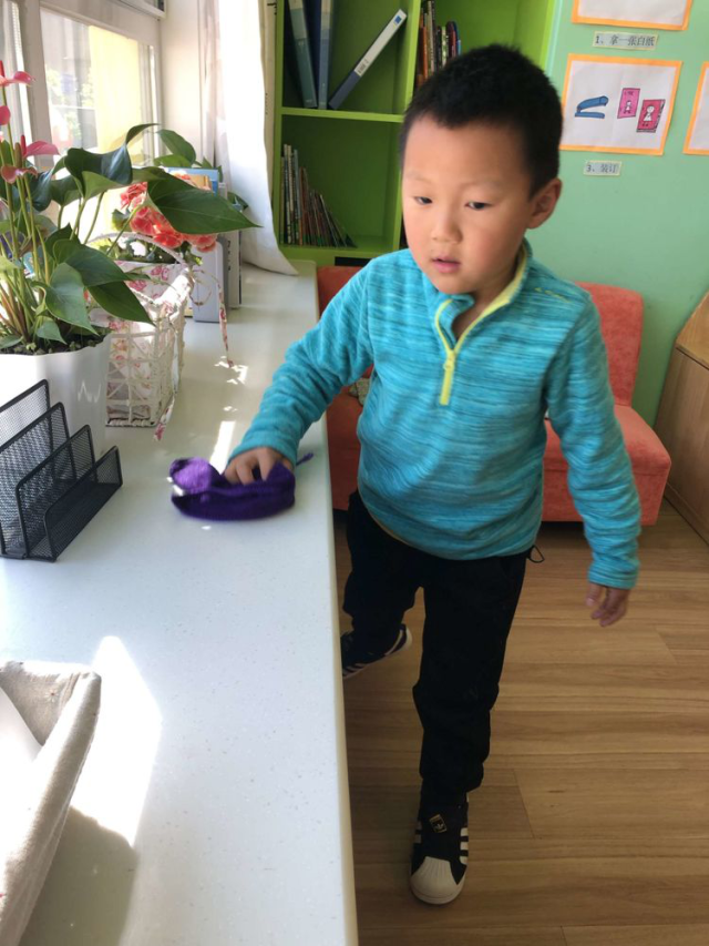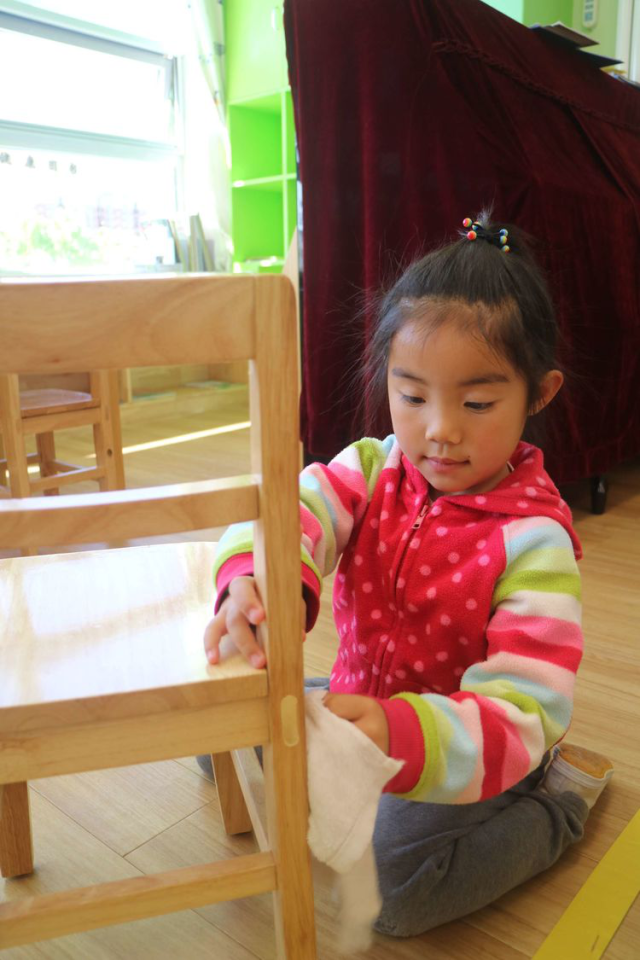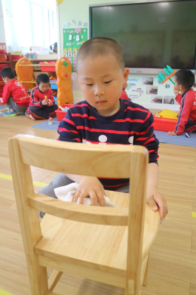 看!我能把小椅子擦的干干净净