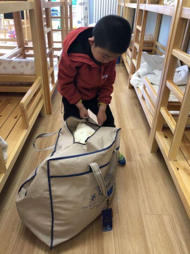 每次都是奶奶帮我装被子,这次由我自己来做!