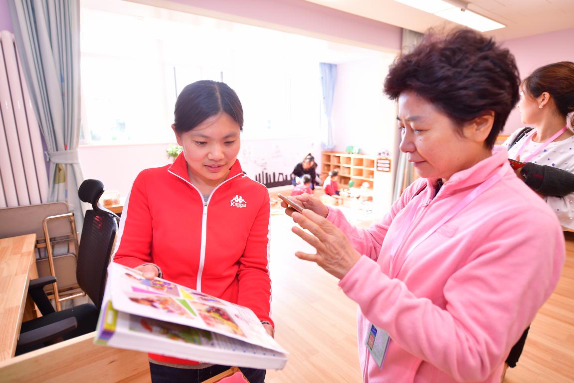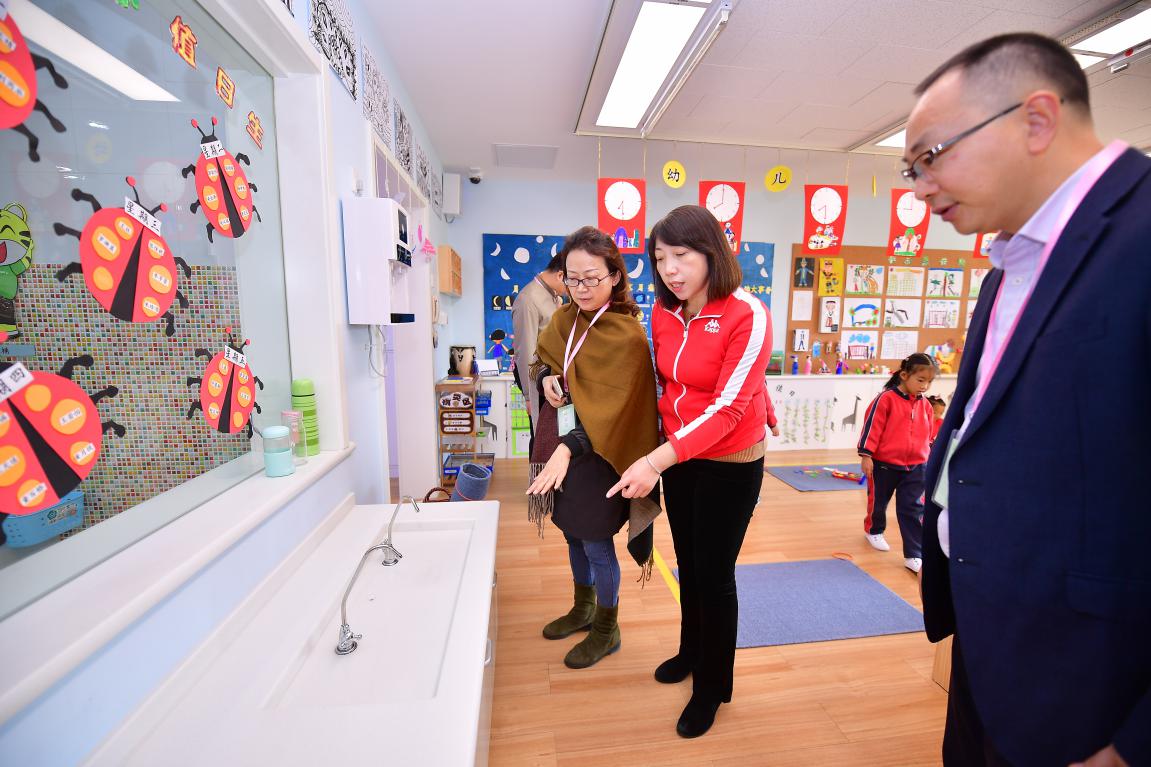 园长嘉宾与教师探讨教室设施