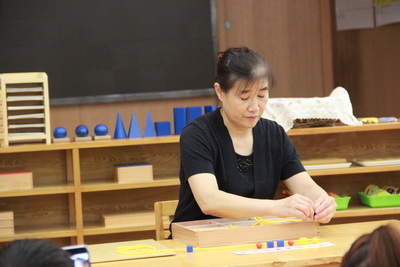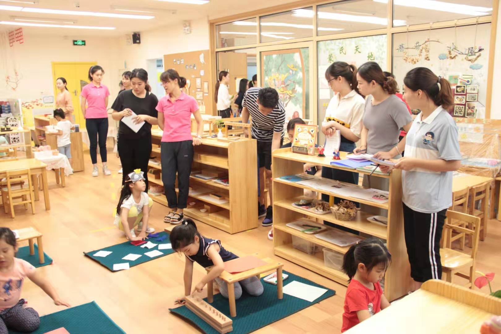 正规滚球app官方网站望京分园保教主任杨海燕老师组织学员对蒙氏班级进行参观,并组织答疑