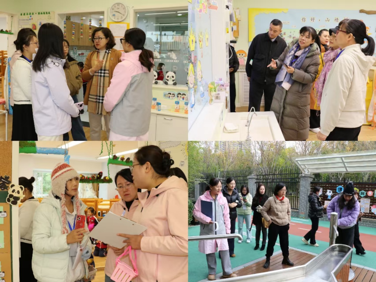 校本部园教科研主任李琳,保教主任杜欣、金瑛带队参观