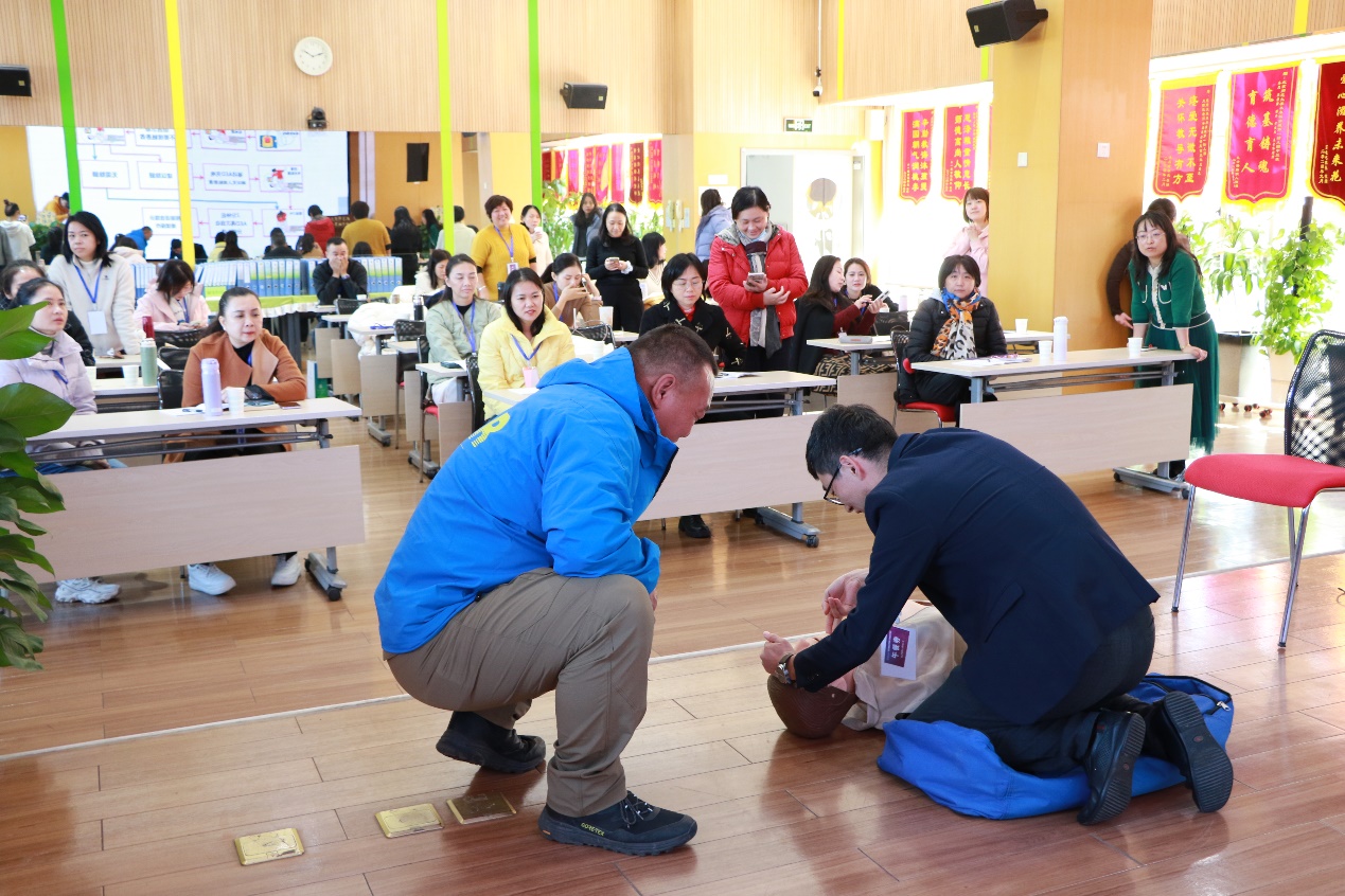 安全是幼儿园工作的“生命线”,10月21日的“安全工作”主题培训聚焦实操与规范,在正规滚球app官方网站未来一幼展开。上午,北京蓝天救援队曹春利老师为学员们带来沉浸式安全应急演练。以真实案例为依托,指导学员们进行了心肺复苏(CPR+AED)、海姆立克急救法等急救方法的实操演练,让“安全第一”从理念转化为可操作的行动指南。