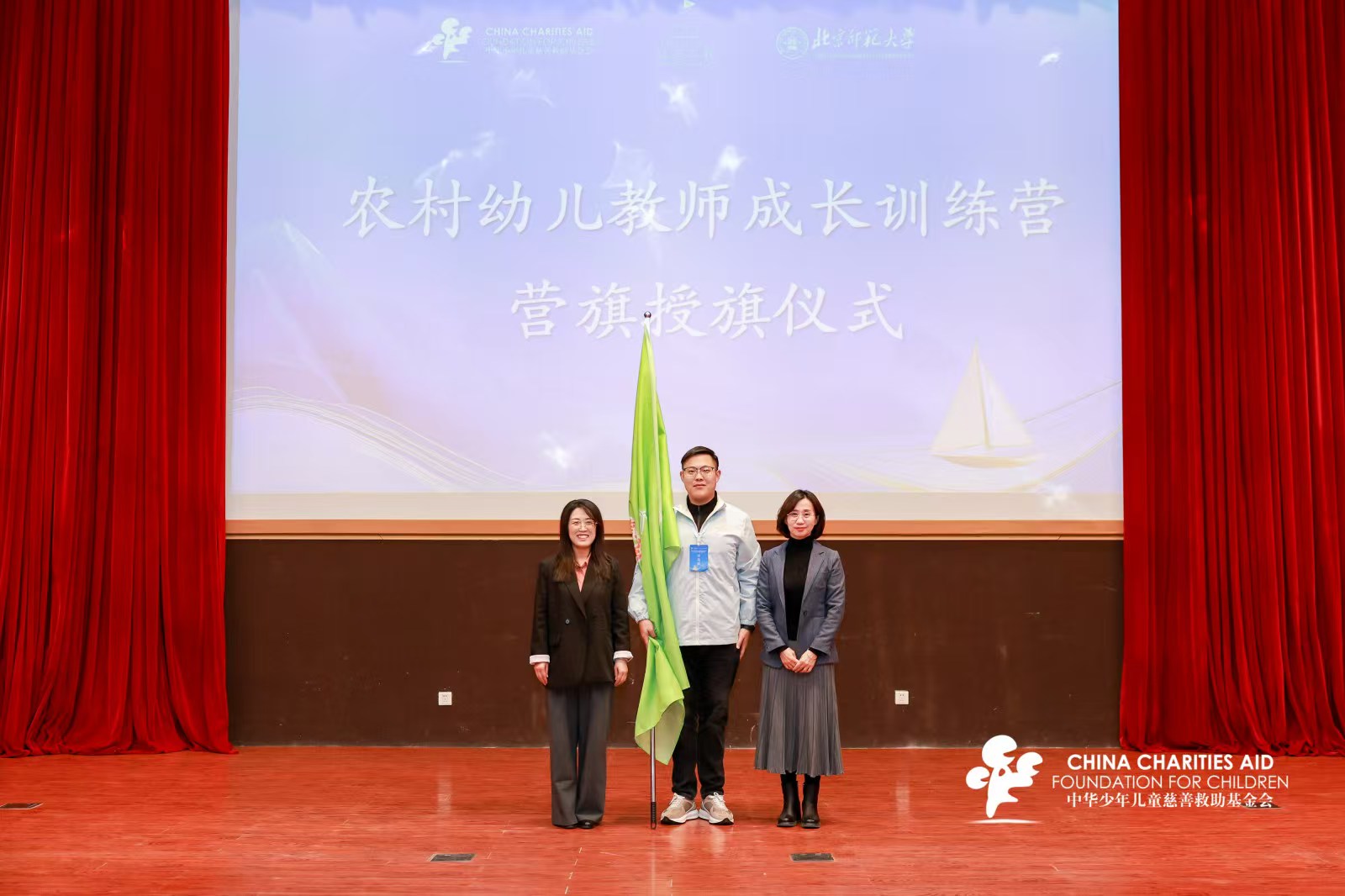 仪式的高潮环节中,第八期学员代表郑重接过象征使命与希望的“农村幼儿教师成长训练营”营旗,寓意公益精神与教育希望的接力传承。