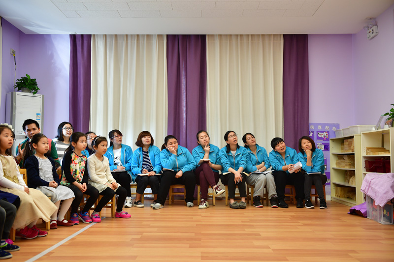 多名班长、主任、教研员们齐聚望京分园,共同探讨幼儿美术欣赏科学的组织方法。