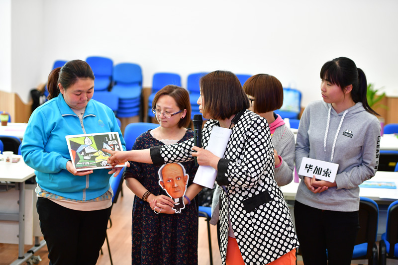 要培养具有艺术鉴赏力的孩子,首先提升教师的艺术素养。杨海燕主任组织教师们《视觉大发现》,在游戏中体现艺术大师的创作风格,创作思想及大师作品美之所在。幼儿美术欣赏的核心目标是什么?杨主任组织教师们通过集体讨论,分组讨论,小组展示。在参与式的培训中提升了教师们对美术欣赏核心目标、教学设计、教学评价的组织实施能力。