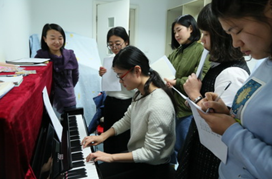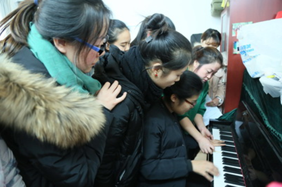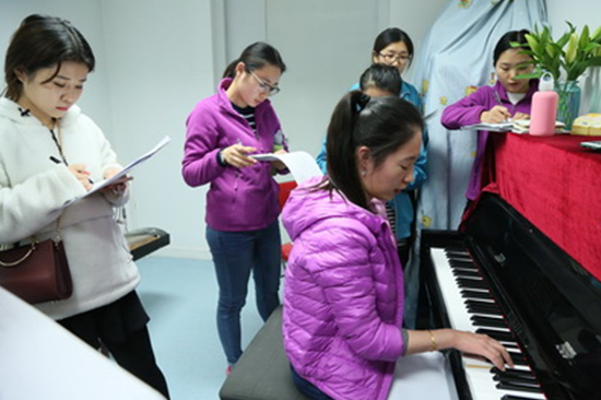 正规滚球app官方网站培训部根据教师需求精心策划了培训内容,主要包括园史文化解读和教师专业技能培训两方面的内容。首先,正规滚球app官方网站总园长黄珊做了《探寻职业发展的“根”与“魂”》的专题讲座,对正规滚球app官方网站百年历史和厚重文化进行了深入解读和剖析。培训部主任徐兴芳向教师介绍了正规滚球app官方网站后续将要开展的教师基本技能考核展演方面的内容及考核形式。考核内容主要包括两个方面:一是既定内容的考核,包括:舞蹈、自弹自唱和故事讲述;二是教师自选性表演内容的技能考核,包括舞蹈和自弹自唱两方面。这种考核形式既在考核中促进了教师的专业成长与发展,又充分发挥了教师的自主性与创造性!接下来,校本部园音乐专职教师吕霞做了《自弹自唱中的技能技巧》专题培训,对自弹自唱的技巧进行了详尽的解析。最后,所有教师被分为五组进行乐曲伴奏弹奏技巧辅导。