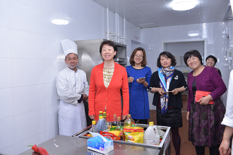 黄珊园长带领大家参观幼儿园食堂环境