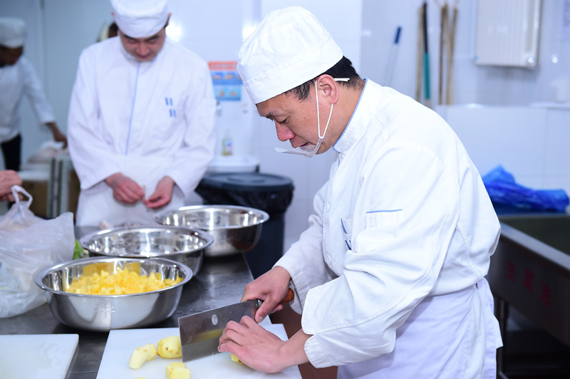 准备食材中的师傅