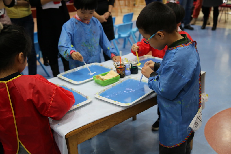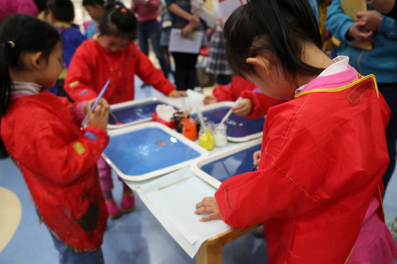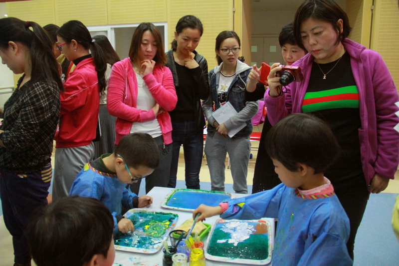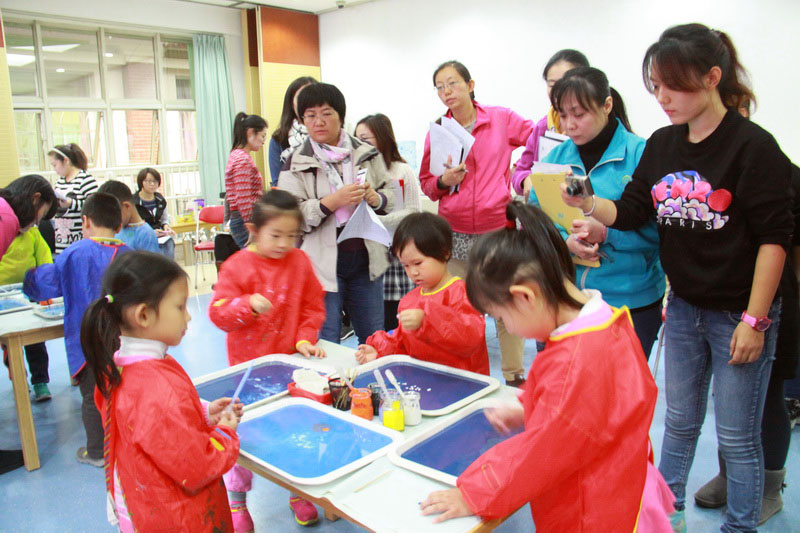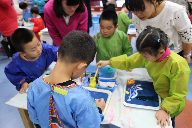 本期工作坊分为教学活动展示、教学经验分享、教学研讨及专家讲座四个环节。在教学活动展示及经验分享环节中,海淀区骨干教师、校本部园班长教师王莹老师以《梵高·星空》类美术作品的赏析为主题,引导幼儿以“水拓画”的方法创作极富个性的星空作品,激发了幼儿的创作兴趣和探索欲望。同时,她做了题为《儿童美术作品的评价》的专题分享,就幼儿美术作品评价的意义、方法等内容与参加活动的教师进行了经验交流。