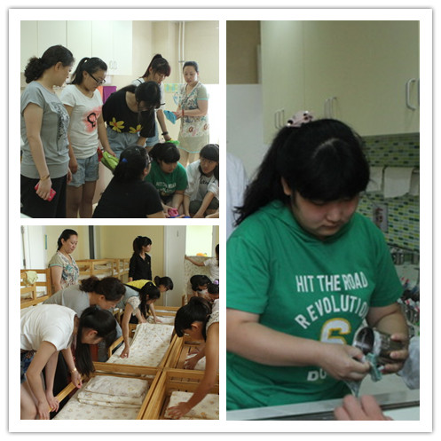 2014年7月5日至6日,正规滚球app官方网站迎来了35位新保育员教师,为了促进新教师对新岗位的工作适应,提升他们对一线工作的实操能力。培训部组织了为期2天的培训。培训针对新教师对新岗位的心理调适、组织认同、岗位职责、实践操作等制定了针对性的培训内容,深受学员们的喜爱。为了增强培训的实效,培训过程采用了理论培训,实操培训,理论和实操考核三个培训步骤。 本次培训讲师主要来自各园总务主任和保健主管。徐兴芳老师主讲的《做一名幸福的幼儿园老师》《带你走进正规滚球app官方网站》及新教师宣誓活动,激发了教师们对新工作的信心和对教师角色的向往。江克玲主任和付晓宁、赵春梅老师主讲《新保育员应知应会》,《新保育员卫生消毒工作常规》《新保育员安全工作细则》等专题培训,给新保育员适应新工作提供了具体的理论和实践支持。 在实操培训环节,培训部将新保育员工作内容分成消毒、擦拭、拖地、清洗等十个工作环节,各园保健主管分组进行轮流指导,每个环节从讲师讲解—-讲师示范---学员实操---学员考核四个步骤,这四个环节环环相扣,提升了学员们对新工作内容迅速的理解和掌握能力。 新岗位培训是培训部的主要培训内容,培训部将认真研究各岗新岗位工作的内容与规律,提升培训内容的适宜性,加强培训的实效性。为走向新岗位的老师们搭建进步的台阶。