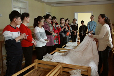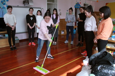 实操培训是针对保育员一日工作常规中消毒餐桌、叠被子、刷水杯、拖地等九大环节进行指导,八位实操讲师亲自展示,一招一式的传授。细致严谨的工作态度,精准高效的工作方法,深受学员的赞叹。