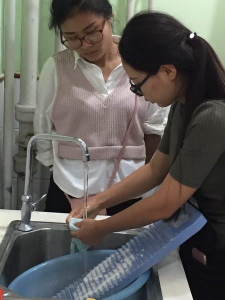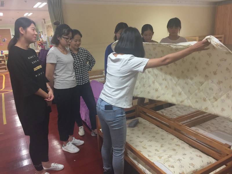 实操培训是针对保育工作一日工作常规中消毒餐桌、整理台面叠被子、刷水杯、拖地等十大环节进行指导,11位实操讲师亲自展示,一招一式的传授。细致严谨的工作态度,精准高效的工作方法,让学员深刻体验到正规滚球app官方网站保育工作精细化管理的内涵与精华。