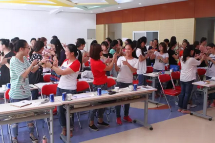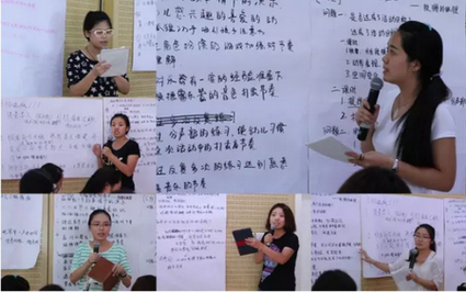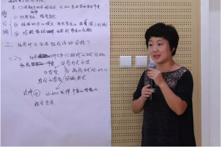 执行园长吴媛媛做了《幼儿园半日教育活动组织策略》的培训,其根据《3~6岁儿童学习与发展指南》,对幼儿园半日活动组织的流程、幼儿活动和教师指导过程进行了细致梳理。培训部主任徐兴芳则从一个轻松的潜能激发游戏入手,为教师们做了《幼儿园文字材料的书写》的参与式培训。校本部园全托部保教主任滕谨及音乐专职教师吕霞则共同组织了如何开展音乐活动的参与式培训。吕霞老师声情并茂的音乐游戏表演及滕谨老师精彩到位的点评,将培训活动推向了高潮,并画上了一个圆满的句号。