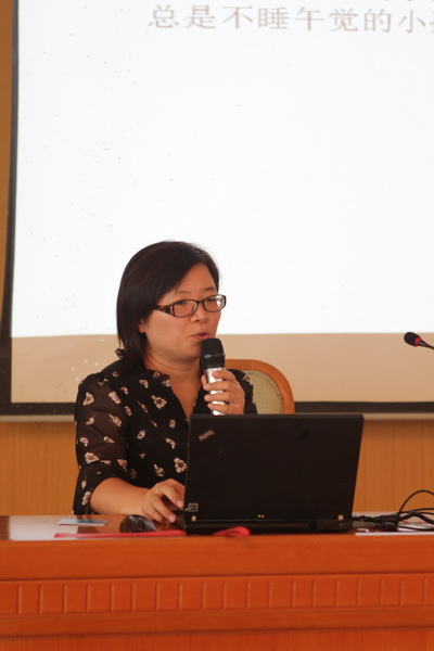 总务主任王秀清做《幼儿园保健工作经验分享》的专题讨论