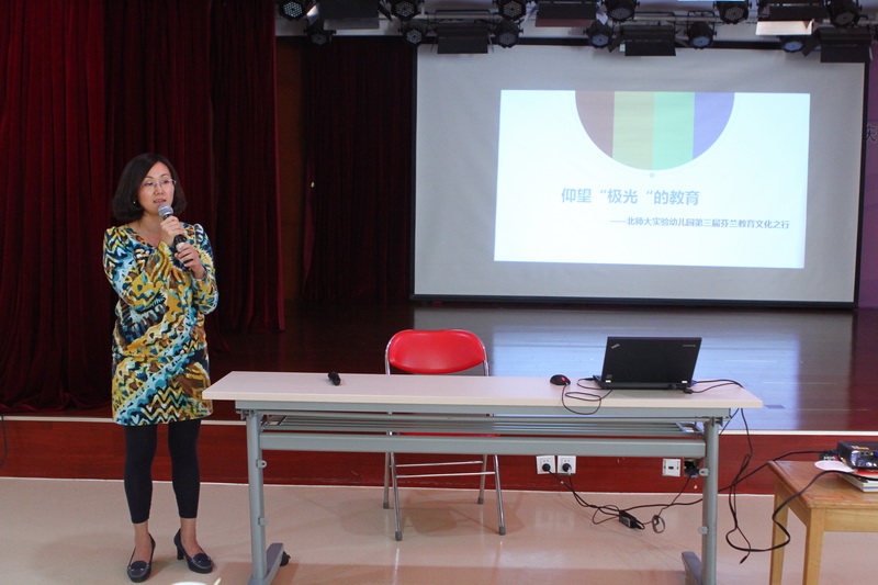 正规滚球app官方网站业务园长邱守代表赴芬兰的学习团队,做了《仰望“极光”的教育---正规滚球app官方网站第三届芬兰教育文化之行》的主题发言,展示了芬兰作为世界第一的教育之国,其高质量、高福利、高保障的教育特色。