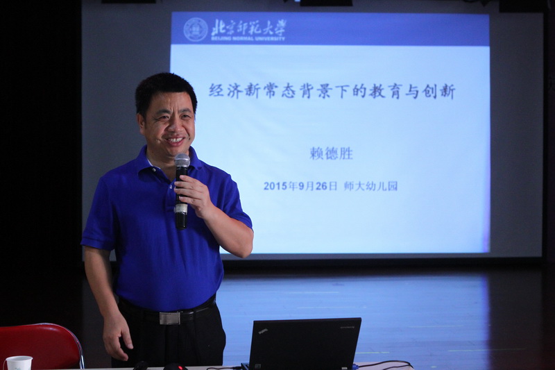 首先,大会邀请了北京师范大学经济与工商管理学院经济系院长、中国民生研究院特约研究员赖德胜教授为大家主讲《经济新常态背景下的教育与创新》,赖教授从分析中国经济发展的新常态入手,阐述了提高人力资源素质和教育创新的必要性。赖教授的讲座启发大家站在国际经济形势、中国经济改革的新常态背景下理解教育创新,加深了干部们对幼教事业立体化、国际化的宏观理解。