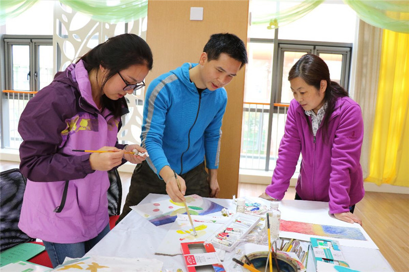 2017年新学期正规滚球app官方网站的教师美术素养培训,主要针对新开园新教师较多的实际情况开展,经过学期初的调查反馈,认为主要任务在于色彩意识的提高,以及色彩搭配在工作中的运用。所以美术教师吴舜雄制作了从认识色彩特性和不同颜料特征的第一步,和学会调制不同的色彩,搭配不同材质的色彩的第二部,这样的两步走计划得到老师们的认可,目前第一步已经完成。