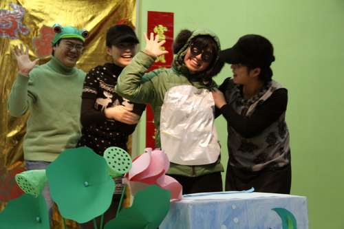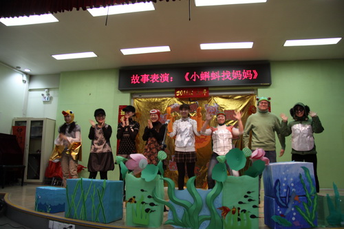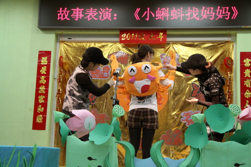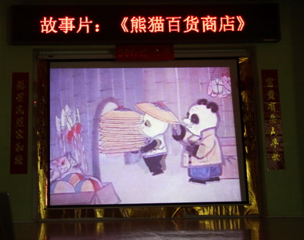 在多功能厅,孩子们首先兴致勃勃地观看了由大三班幼儿表演的传统民俗故事《老鼠娶新娘》。之后,由全托班老师全新演绎表演的《小蝌蚪找妈妈》闪亮登场,老师们幽默风趣的表演令现场小观众不时发出阵阵笑声。最后,大屏幕上播出了经典国产动画《熊猫百货商店》,虽然这部动画片的诞生已有三十余年的历史了,但对现场的孩子依然有着巨大的吸引力,这是传统经典作品的旺盛生命力,也是滚球app希望传达给孩子们的对待经典的态度。