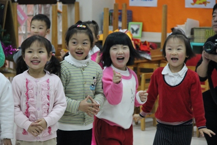 园长和主任与小朋友们一起迎新年