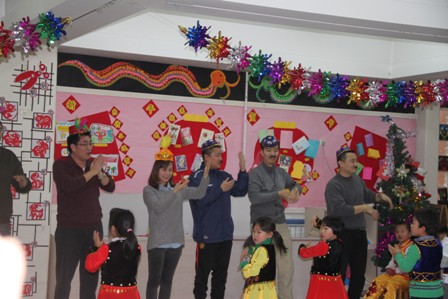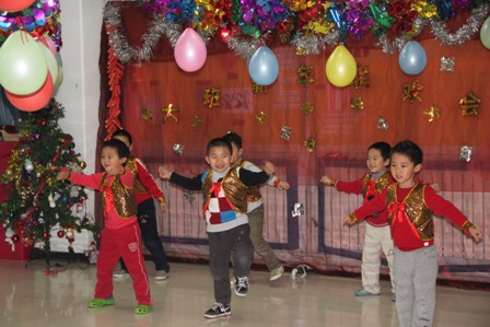 2012年12月28日下午,奥林分园“热热闹闹红红火火中国年”的新年庆祝活动之班级亲子联欢会热闹开场。不同的教学班根据班级实际情况精心组织,开展了丰富多彩、别开生面的联欢活动。联欢会的节目和游艺形式多种多样,孩子和家长都积极参与,其乐融融,大家用动听的歌声、优美的舞姿表达对新年的祝福,表达对未来生活的畅想。