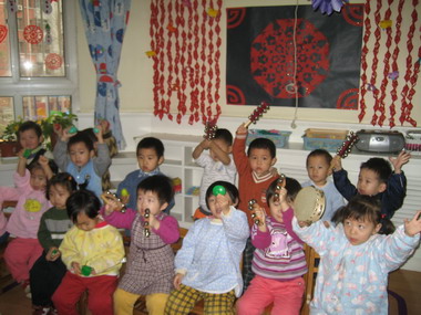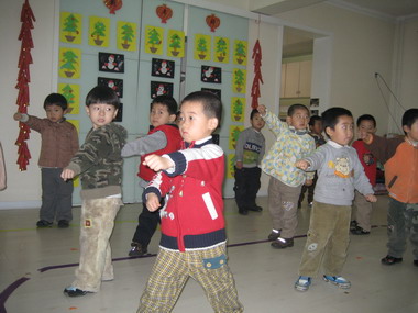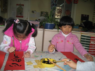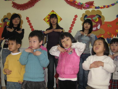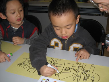 小朋友们观看动画片:年的传说、十二生肖、哪咤闹海