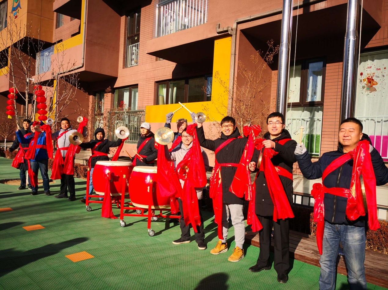 精彩的舞狮表演、抖空竹表演开启了室外庆祝的篇章,老师们展示了高超的技艺,龙娃们聚精会神,生怕一个眨眼就错过了精彩瞬间!为了给龙娃们带来惊喜,龙樾分园的老师们也早有准备。东北秧歌扭起来,动起来,扭出新年的喜庆和欢愉!