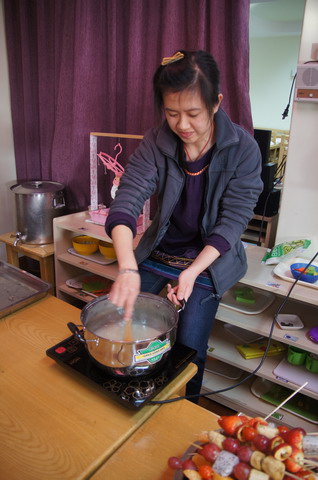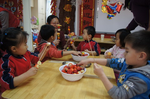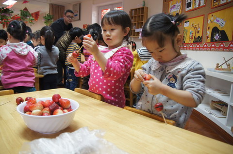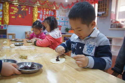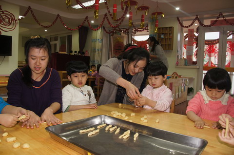 新年来临,牡丹园分园日托小班和中班的老师和孩子们以自己喜爱的方式“美食DIY”迎接新年。老师们准备了各种食品原料、模具,孩子们忙着做各种图案的饼干、拧麻花、冰糖葫芦……各种简单易制的小食品让孩子们忙里忙外,喜不自胜。孩子们穿梭忙碌着,自己动手丰衣足食,还是自己烹制的食品好吃!