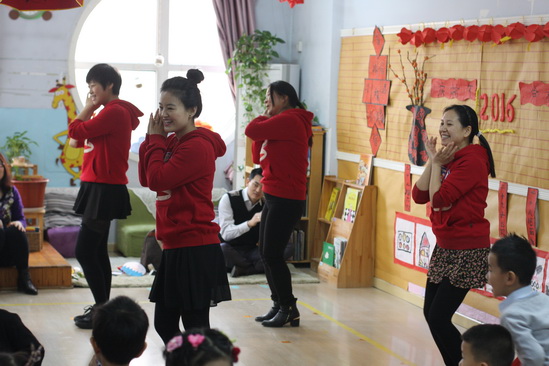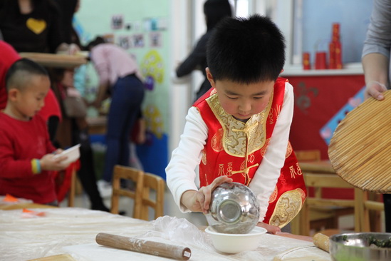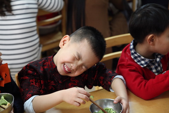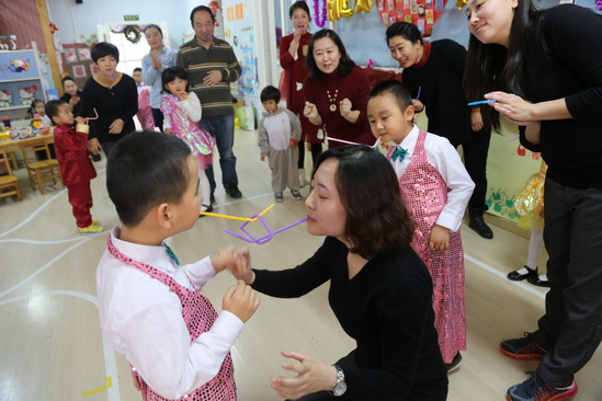 2015年12月31日,望京分园迎来了一年一度的新年亲子联欢会。与以往不同的是,今年滚球app的亲子联欢会首次尝试以班级为单位进行开展,所以无论是孩子、家长还是老师,大家都非常地期待。本次联欢会,滚球app充分挖掘班级资源,展现班级特色:歌曲串烧、武术表演、服装秀、打击乐、活力操、三句半等丰富多彩、创意层出的节目令人大饱眼福;吹羽毛、传吸管、贴福字、幸运抽奖等互动性小游戏令人惊喜不断;而带着美好祝福和精美礼物的黄珊总园长、徐翠凤园长和悠悠猴的到访更是将现场的气氛推向了高潮!孩子们精彩的表演、老师们精心的准备、家长们的积极参与,让今年的新年的亲子联欢会格外的温馨和热闹!精彩的节目过后,大家围坐在一起包饺子、吃饺子,体验“团圆”的文化意味和浓浓的年味!