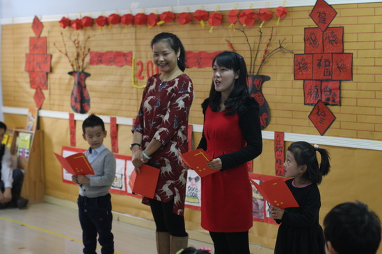 黄珊总园长和徐翠凤园长为班上小朋友送来了新年的礼物和祝福