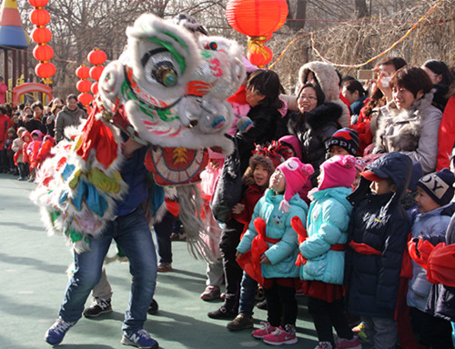 舞狮表演开始——叔叔,你们真棒!