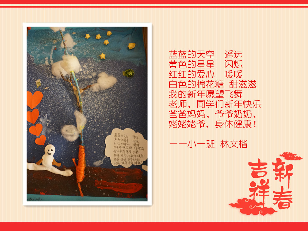 喜庆的新年要到了,过去的一年里,在家长的配合下,滚球app收获了孩子们的欢声笑语,看到了他们在各个方面可喜的成长,滚球app由衷地感到幸福!在新的一年即将到来之际,滚球app用“新年愿望”亲子诗画展的方式,为孩子们期许一个美好未来……