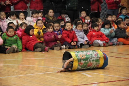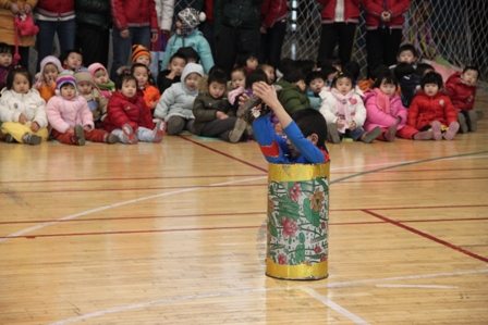 过新年真热闹,好吃好玩好看的接踵而至,继“新年小舞台”和“虎娃逛庙会”活动后,幼儿园特意邀请了杂技演员为小朋友们带来精彩有趣的杂技和魔术表演。本次杂技魔术表演有滑稽小丑、变鸽子、丝巾过堂、头顶倒立、板凳技巧、柔术钻筒、炒爆米花等等。演员们精彩的表演赢得了在场所有小观众们热烈的掌声和叫好声。