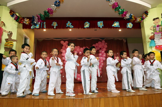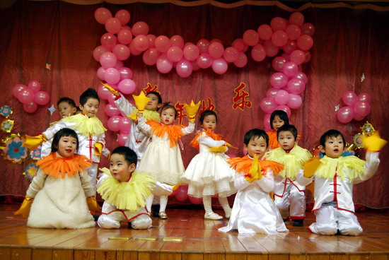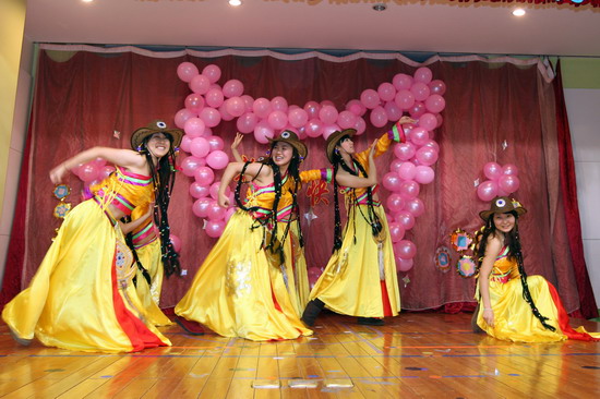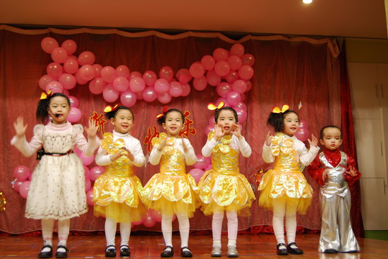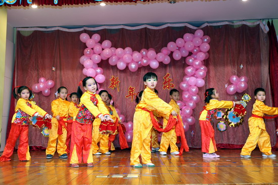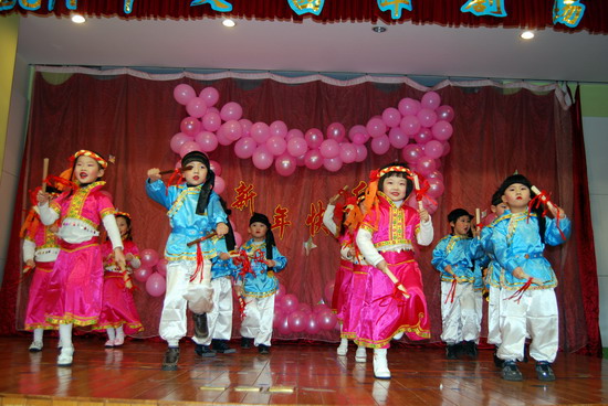 孩子、家长、教师齐聚一堂,喜庆祥和迎新年,12月30日,混龄班迎新年大西洋剧场隆重举行。晚会节目围绕民族文化展开,有热情豪迈的蒙古族舞蹈,喜气热闹的汉族歌舞,还有豪爽阳刚的跆拳道表演,激情奔放的世界杯拉拉舞,美丽怡人的藏族舞……无不是一场民族文化盛会!