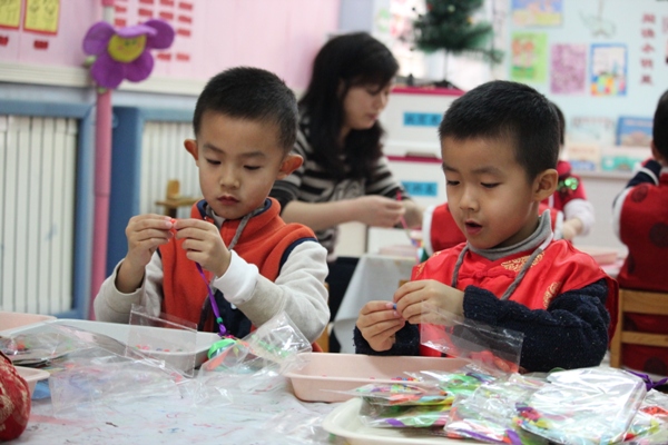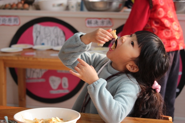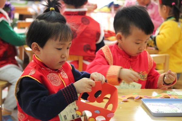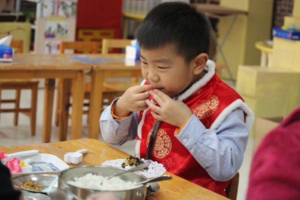 “逛庙会”是幼儿园的传统庆新年活动,也是孩子们最喜爱最期待的新年活动之一,每个班级准备一项手工制作活动、一种食品制作活动。在制作项目的选择上融入文化元素,如:食品制作体现地域饮食文化,东北的关东煮、老北京的炸麻花、春卷、做饭团等等。还有结合猴年的手工活动猴子面具、蘸水画等。庙会当天,孩子们打破班级束缚,自由选择各项活动内容,在活动中收获着各种意想不到的惊喜。而老师们和爱心家长们辛苦付出却收获了孩子们一张张幸福的笑脸和满园的笑声。
