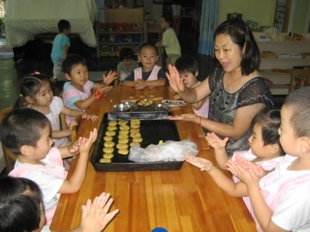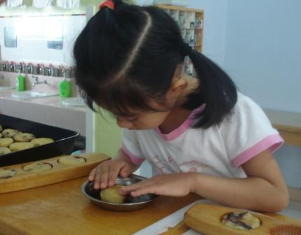 仔细听听老师示范做月饼的步骤