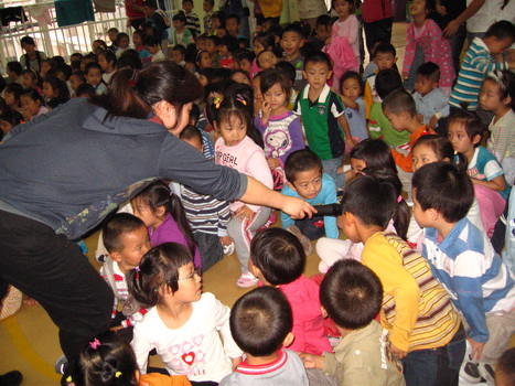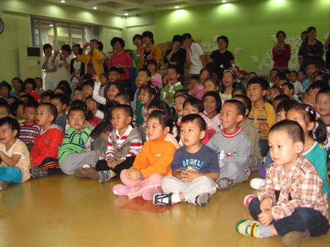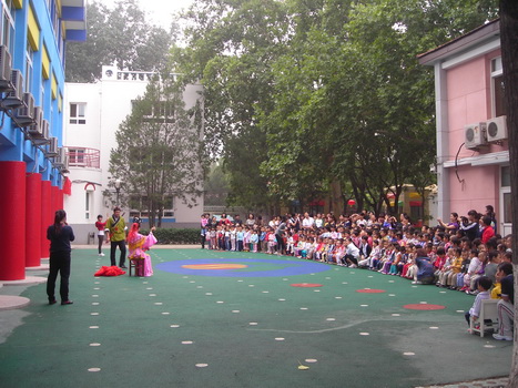 今天上午,经过精心编排后,2009版《嫦娥奔月》又跟孩子们见面了。在现场,孩子们看得津津有味、意犹未尽,不时传出开心的笑声。演出结束后,主持人吕霞老师与孩子们就中秋节的话题进行了轻松的互动,孩子们还以班级为单位与“嫦娥”、“后羿”合影留念。