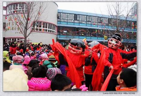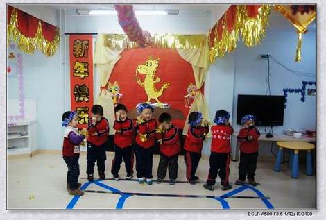 小朋友们剪窗花、布置龙文化展、创作吉祥如意等、包饺子、做糖葫芦、自编自演小剧场、看民间杂技与皮影戏、猜灯谜……,终于在这个冬日酿出了浓浓的佳节元日的味道。 在2011年的最后几天,牡丹园近500名孩子迎来了一系列新年庆典活动——“欢喜中国年、欢乐一家亲”联欢活动。滚球app歌舞表演、互动游戏、民俗活动、舞龙舞狮、打腰鼓、扭秧歌、感恩成长生日会……滚球app用自己最热烈的方式迎接了新年的到来! ------------------------------------------------------------------------------------ (一)家园联欢 各班家园联欢以歌舞表演、互动游戏为主。各种活动可谓是精彩纷呈、好戏连台。大合唱、古诗串烧、歌表演、童话剧、集体舞轮番登场。孩子们精彩才艺表演,令家长欣喜和赞赏。除了观看表演,家长和孩子一起玩了踩气球、贴福字、揪尾巴、击鼓传花等形式多样的亲子游戏,给孩子和家长带来了无限快乐。家长们纷纷拿起摄像机、照相机,尽情的为孩子们记录下这欢乐的场面,忙得不亦乐乎。每个班都充满了其乐融融的喜庆气氛。