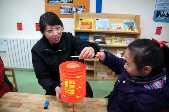 孩子们点着灯笼,猜着谜语,感受着节日的喜气氛围……