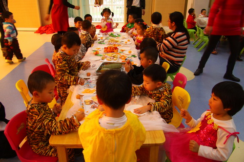 2011年12月30日,所有婴班小朋友和老师们齐聚多功能厅,演节目、做贺卡、互送祝福,品茶点、吃饺子、其乐融融,在欢声笑语中度过了难忘的新年联欢会。