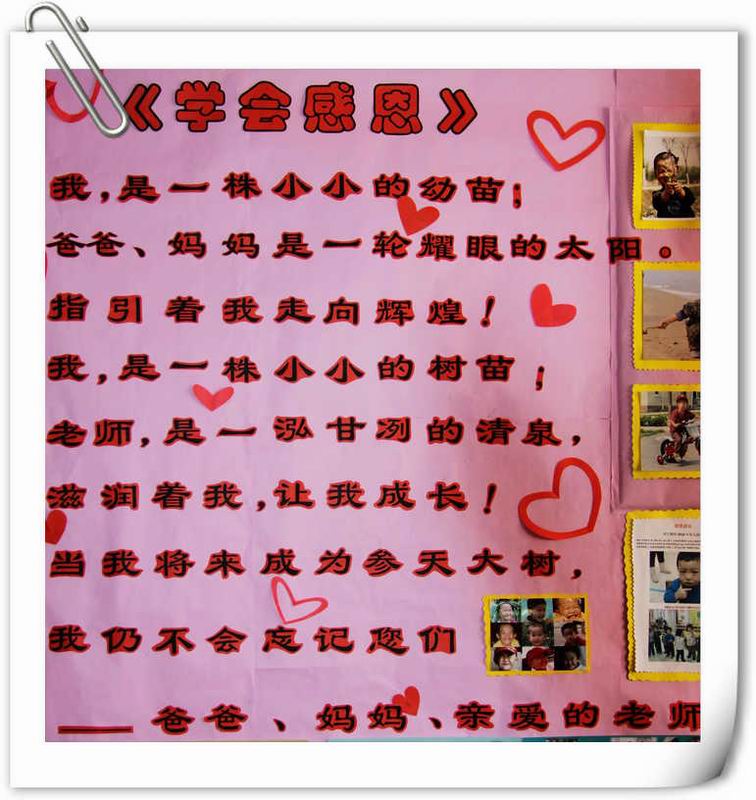 (牡丹园新年系列活动之十) 导言: 了解春节文化、感受喜庆气氛,同时培养幼儿感恩的心态,这是新年活动的宗旨所在。除了亲子创作感恩诗画,滚球app还收集了孩子出生 、一岁、两岁……一直到现在的经典照片。经过家长和老师的精心设计,在全托和日托大厅进行展示。 在这个年末,回顾孩子的成长过程,感恩这一路上有你、有我、有他……